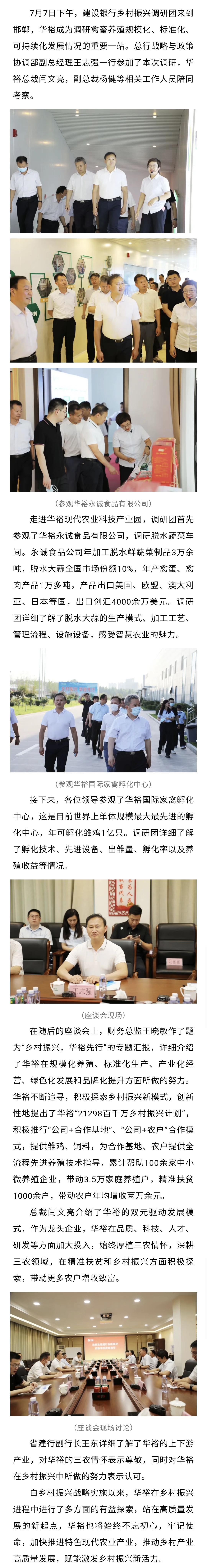 建設銀行總行戰略與政策協調部副總經理王志強一行蒞臨華裕