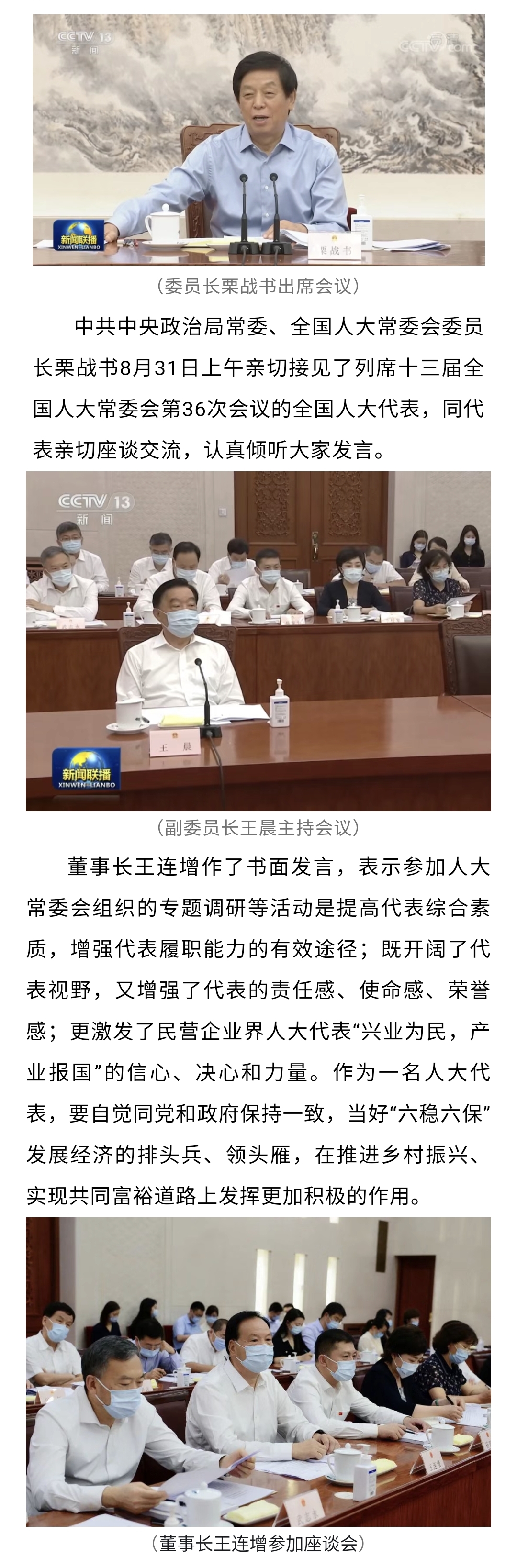 董事長王連增受到栗戰書委員長親切接見!