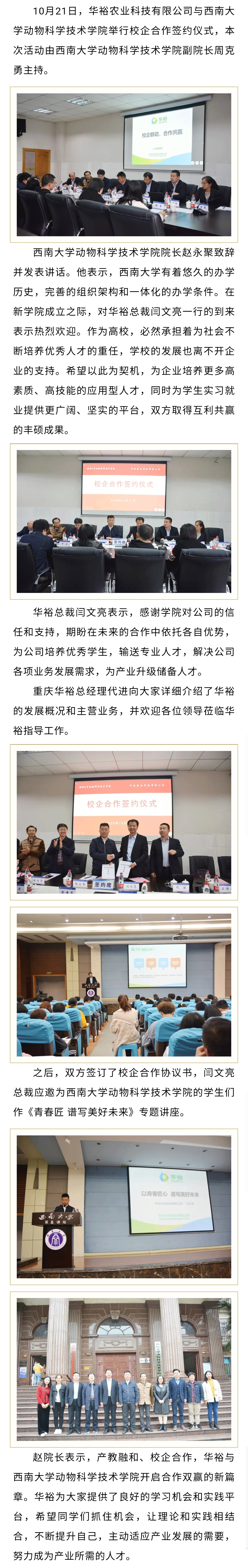 校企聯(lián)動 合作共贏——華裕與西南大學(xué)動物科學(xué)技術(shù)學(xué)院簽約儀式圓滿成功