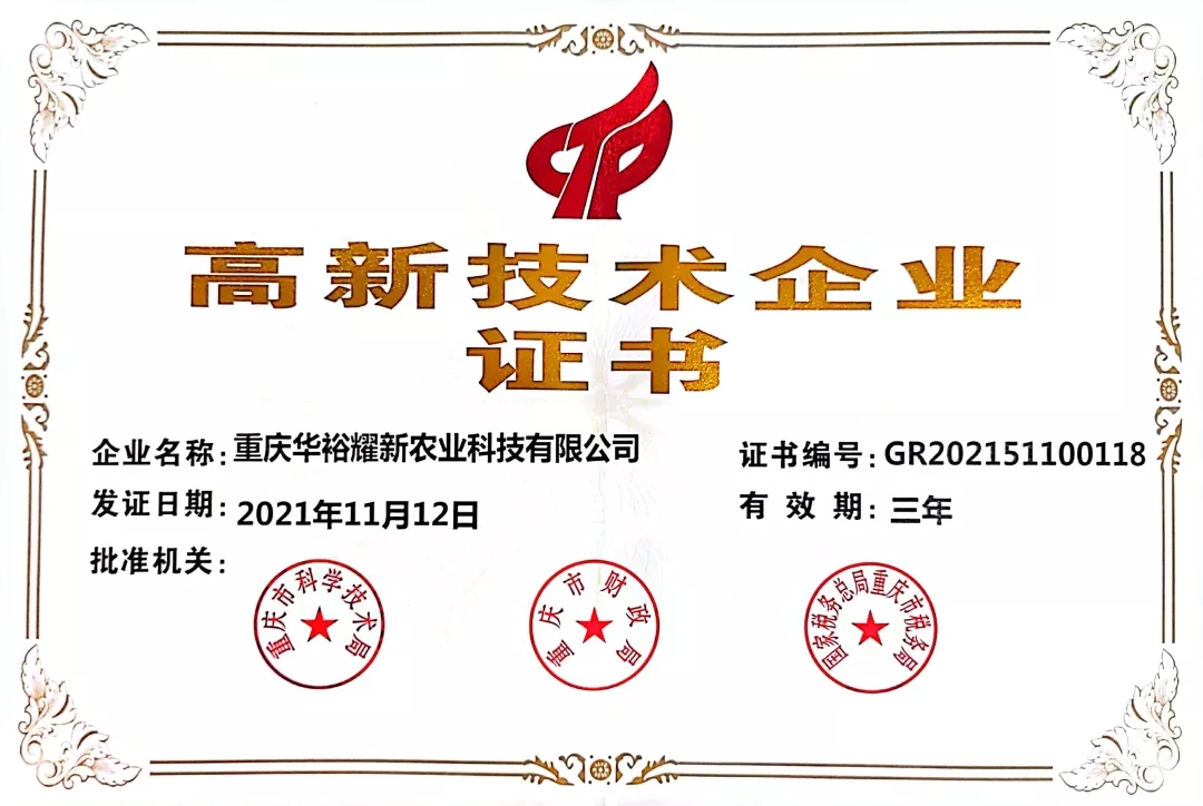 【喜訊】重慶華裕耀新農(nóng)業(yè)科技有限公司榮獲高新技術(shù)企業(yè)認(rèn)定!